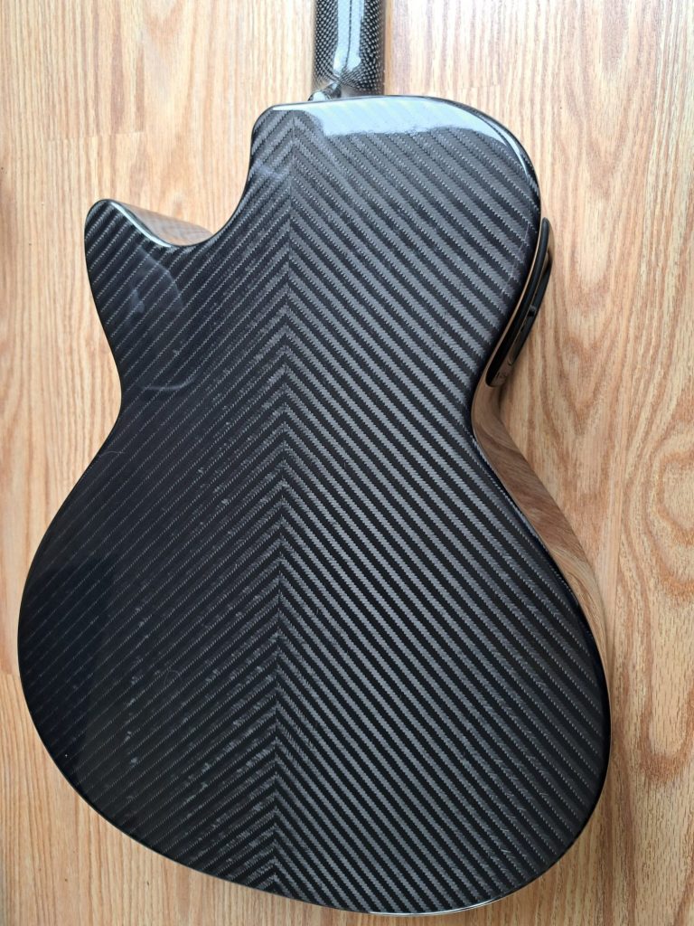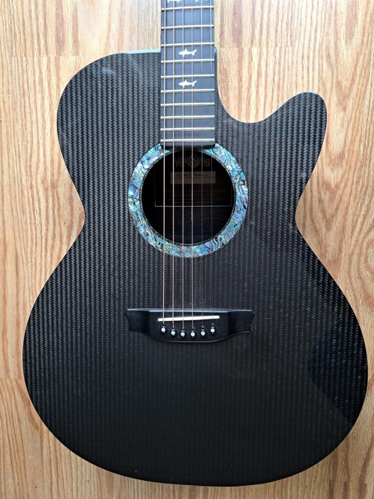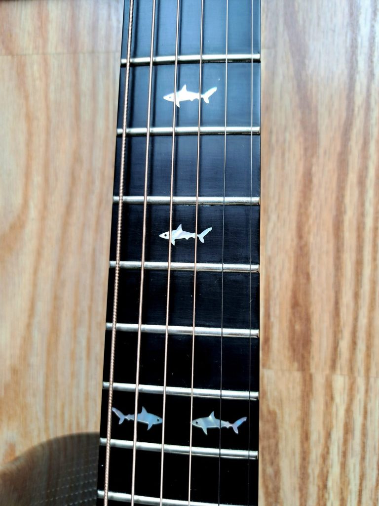 Impervious to humidity and temperature changes, ridiculously lightweight (it requires no bracing), Carbon Fibre is the answer to living or gigging in a changing environment. Its stability means that you can take it out of its case on a snowy day, into a hot room, and it will stay in tune. The tone is actually surprising - much woodier than I'd expected, and having a really good balance from bass to treble; it there's a downside, it can be a bit too lively - 'edgy' - as my good friend and retired luthier Roger Williams described it. That Roger - who is a master craftsman and knows more about wood than pretty much anyone I know - was pleasantly surprised by the tone of this Rainsong guitar. As much as I love natural wood, there's something really quite enchanting about my Rainsong; it's a guitar I will have for life, and every time I play it, it brings a smile. I adore the Great White Shark inlays - a nice touch that appeals to my love of nature.