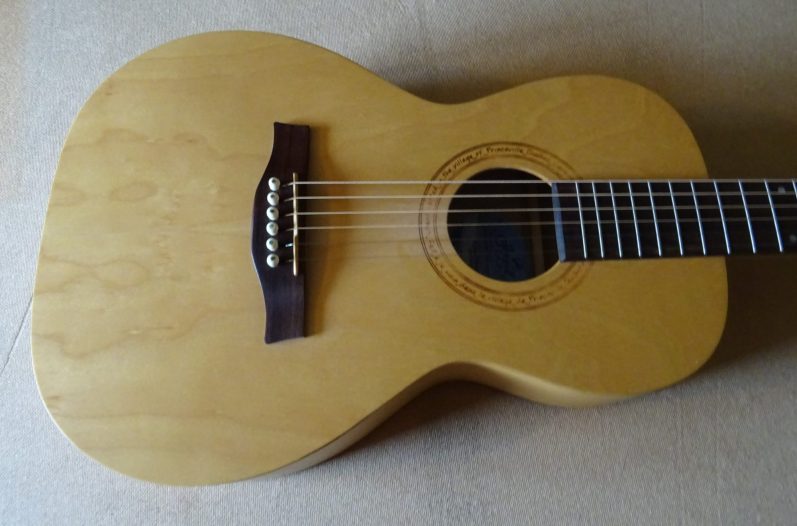 Maple is dense, hard and heavy; it has a powerful attack and a very short decay time, quite midrange to top focused, it has a bright and clean tone that really stand out in a mix/band setting. I have owned a few Maple guitars, and love what they can do, but they're not my first choice unless I'm playing with other musicians, acoustically. They are often striking looking guitars, with beautiful wood grain.